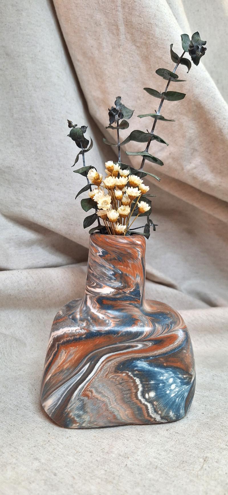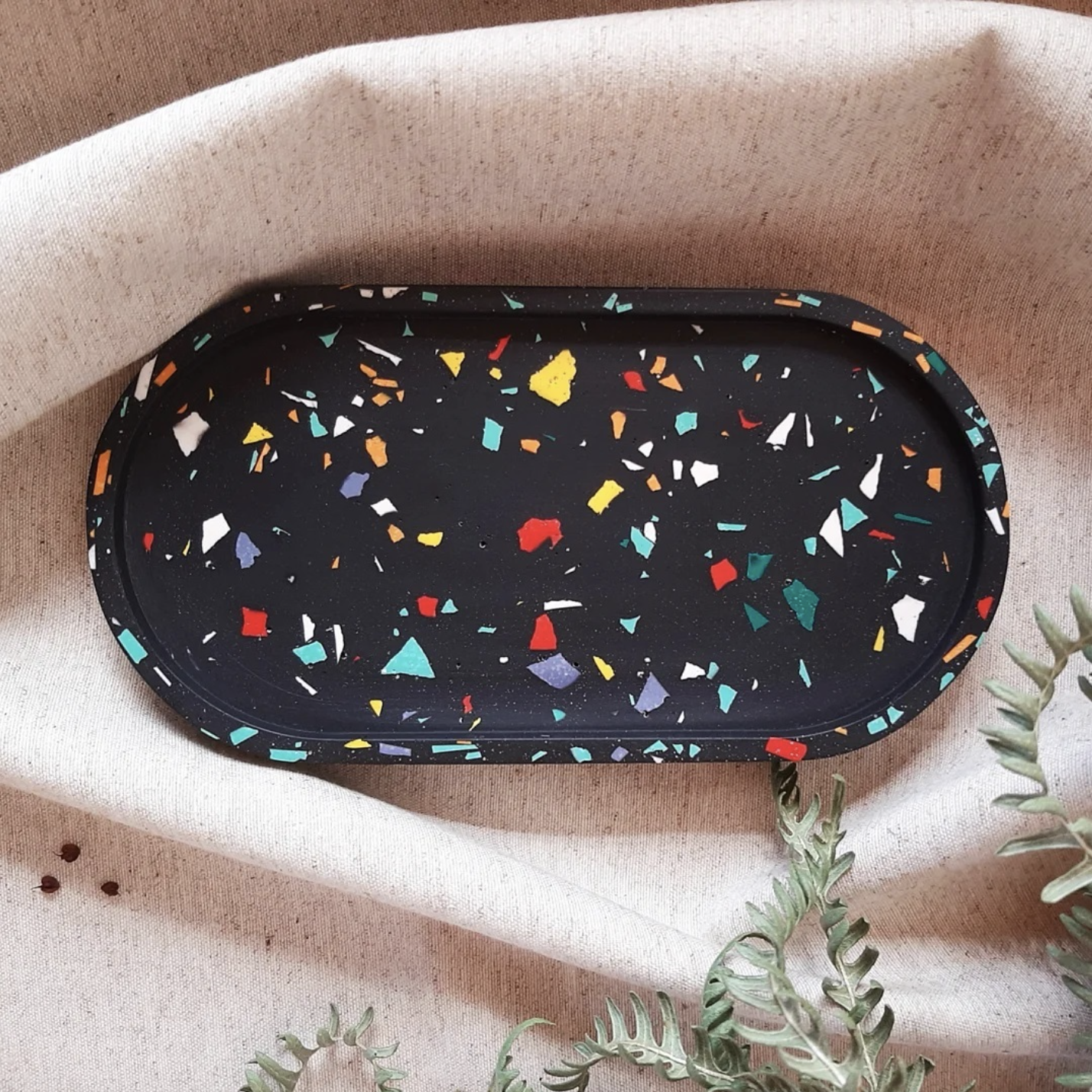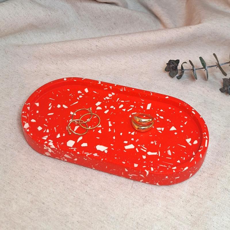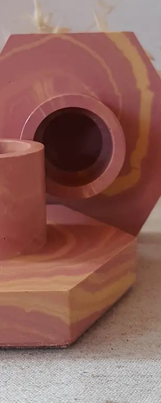 En el 2020 comencé a experimentar con la resina, material que permite la fabricación de piezas por medio de moldes. Son dos los efectos que se consiguen con este tipo de material, los marmoleados y el terrazo.
